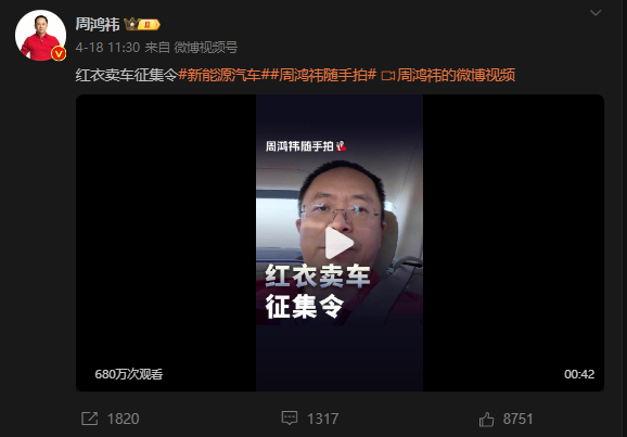 周鸿祎解释道:“这是因为我需要体验新一代车的感觉。古人说要‘破釜沉舟’,所以我就把这车卖掉,放弃传统意义的豪华车,换上国产的新能源智能网联车。”