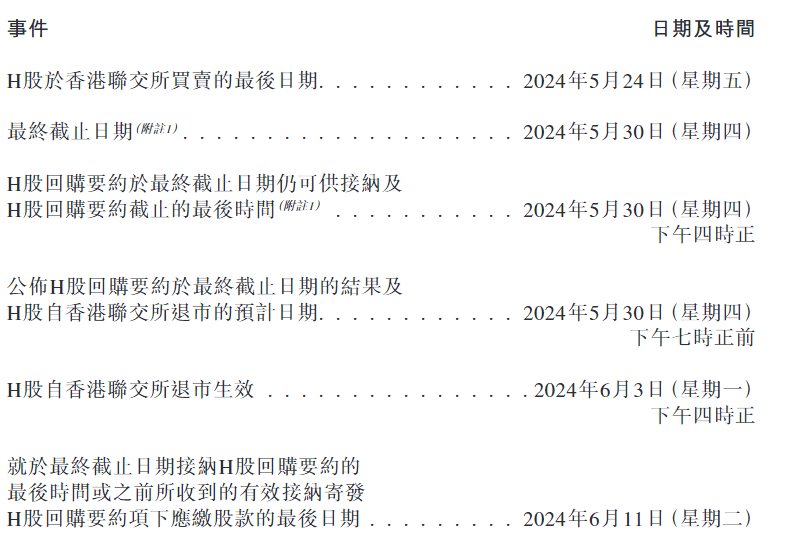 中集车辆在2023年11月28日首次披露退市计划;今年3月11日公司公布具体方案,计划以每股H股7.5港元要约回购中集车辆全部已发行H股以及从香港联交所自愿退市,合计将斥资约11亿港元,公司A股上市地位不变。