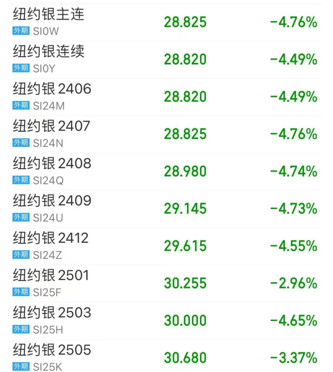 尽管数据显示通胀压力减轻,但贵金属价格反而暴跌。今天凌晨COMEX期银跌近5%,COMEX期金跌近2%。现货白银跌超3%,现货黄金跌超1.00%。