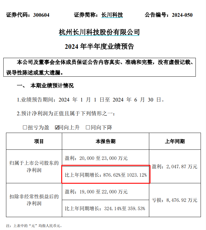 7月15日晚间,长川科技(300604)发布业绩预告,公司预计上半年归属于上市公司股东的净利润为2亿元—2.3亿元,同比增长876.62%—1023.12%。