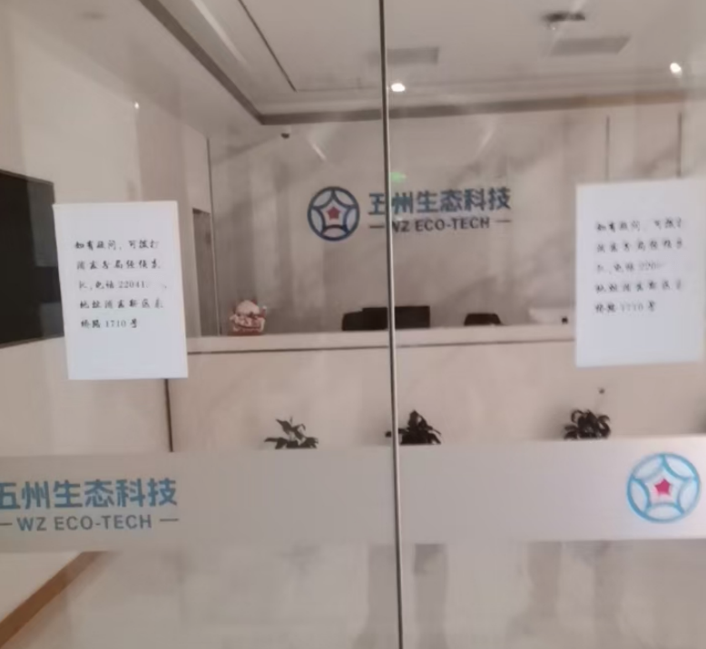 9月29日,记者再次前往了上海华能联合大厦38楼,这里曾是雷根基金办公场所。此前,证券时报记者调查雷根涉嫌非法金融时曾到此处采访。据了解,2023年雷根基金全面爆雷后,公司将该办公场所的招牌更换为“五州生态科技”,雷根基金的高管仍在此地办公。