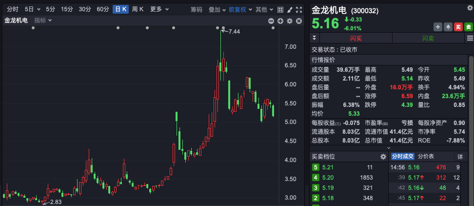财报数据显示,2020-2023年,金龙机电实现归母净利润分别为-2.41亿元、-1.02亿元、5178.13万元、-3.79亿元。今年前三季度,公司实现营业收入10.6亿元,同比下滑53%;归母净利润-6019.71万元,同比下滑1352.44%。