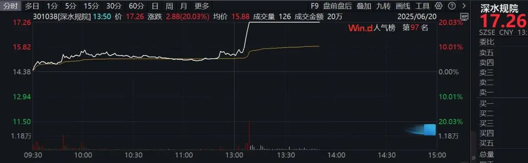 水利建设板块午后拉升,深水规院垂直20%涨停。