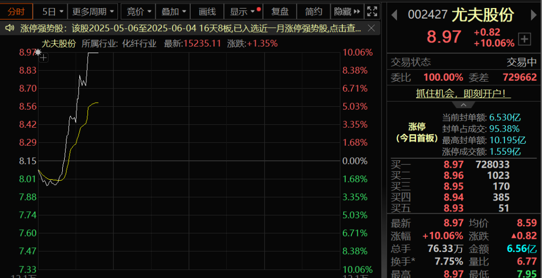 热门板块方面,化学化工板块震荡拉升,尤夫股份触及涨停,苏州龙杰涨超5%,赛特新材、天晟新材、卫星化学涨幅居前。