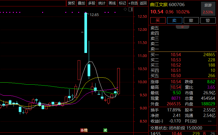 市场热点方面,旅游股午后放量上攻,板块指数一度涨逾3%,成交量较昨日激增逾1倍。曲江文旅、天目湖强势涨停,长白山、黄山旅游、云南旅游、天府文旅等涨幅居前。