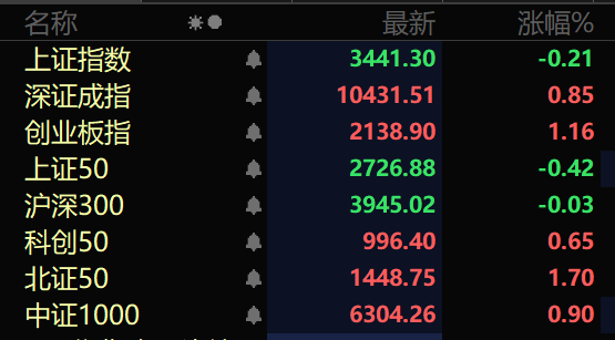 今日早盘,A股继续小幅震荡,主要股指涨跌互现,上证指数、上证50等微幅飘绿,深证成指、创业板指盘中均创出阶段性新高。上涨个股远多于下跌个股,成交保持平稳。