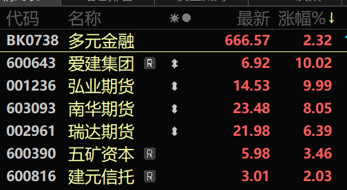 非银金融概念早间再度走强,多元金融方向领涨,板块指数一度放量涨逾3%,创年内新高。弘业期货开盘一字涨停,连续第4日封板;爱建集团同样开盘涨停,连续3日封板块;瑞达期货、永安期货、南华期货等跟涨。