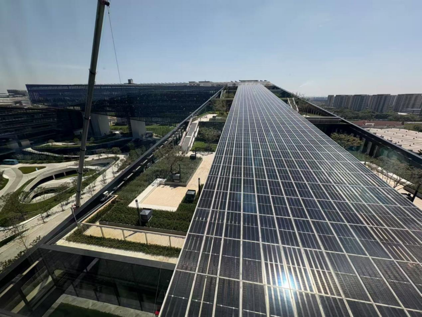 在节能和低碳方面,园区还通过大量敷设近1万平方米的屋面分布式光伏板,打造了约1.8MWp的光伏发电系统,年均发电量约180万度,可以提供园区总年耗电量的10%,预计年均可减少二氧化碳排放1732吨,节约标煤552吨。