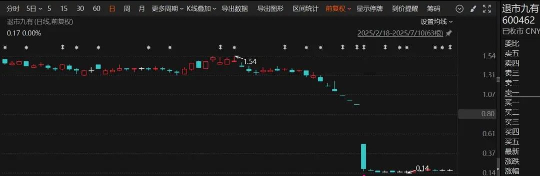 6月16日,退市九有收到上交所《股票终止上市的决定》,公司股票随即于6月24日进入退市整理期,退市整理期为15个交易日。算下来,公司股票的最后交易日期预计为7月14日。