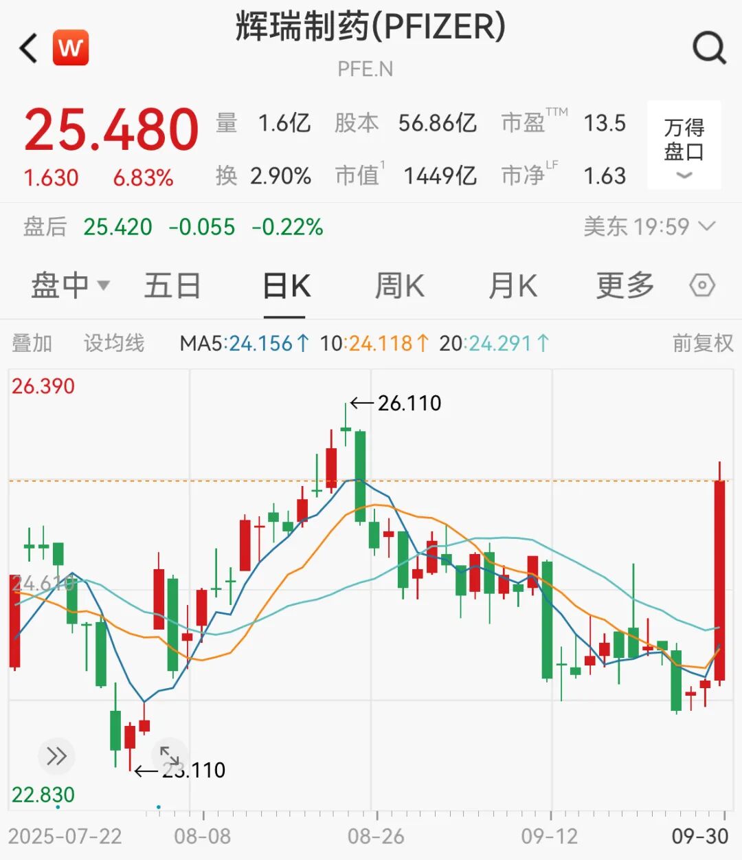医药制药板块个股多数走高。辉瑞制药上涨6.83%,默克涨6.81%,礼来上涨5.02%。