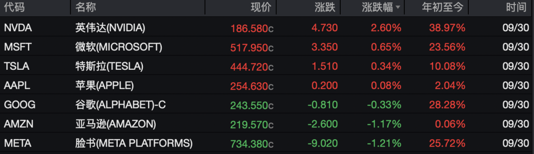 大型科技股涨跌互现,英伟达涨2.6%,市值突破4.5万亿美元,再创历史新高。微软涨0.65%,特斯拉涨0.34%,苹果微涨;Meta、亚马逊均跌超1%,谷歌跌0.33%。