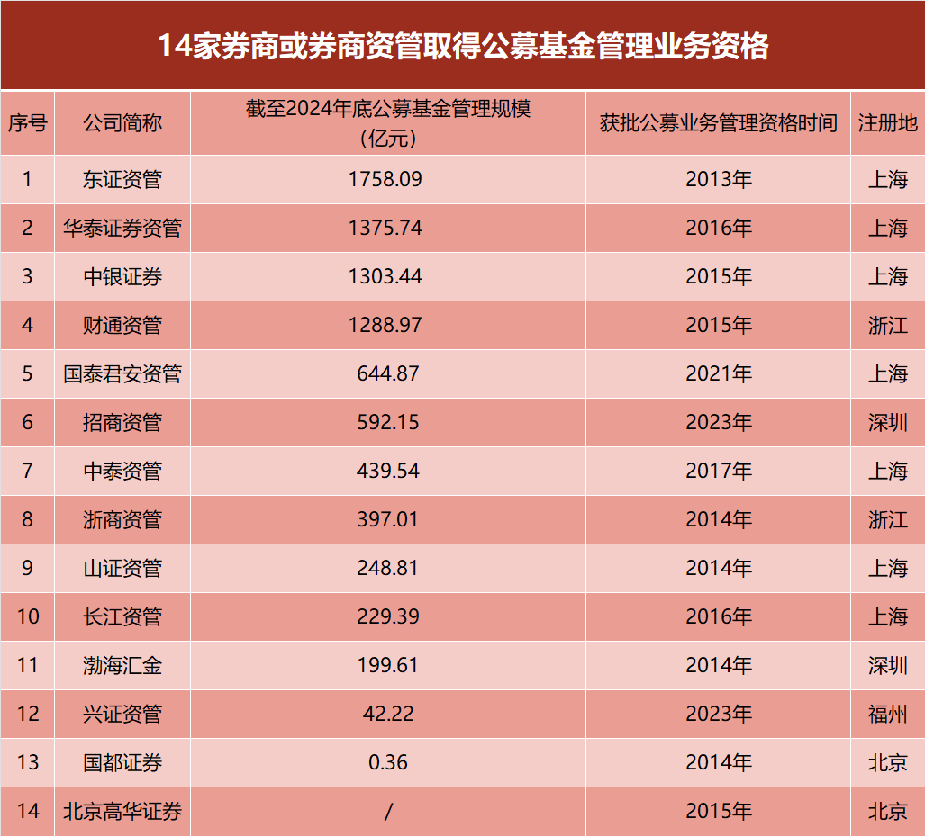 截至目前,共有3家券商及11家券商资管子公司获批公募业务资格。