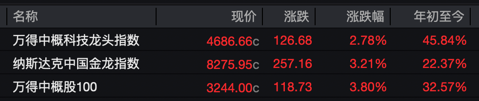 纳斯达克中国金龙指数收涨3.21%,热门中概股普涨。世纪互联涨超10%,蔚来涨7%,名创优品涨超5%,阿里巴巴、京东涨超4%,小鹏汽车、百度涨超3%。