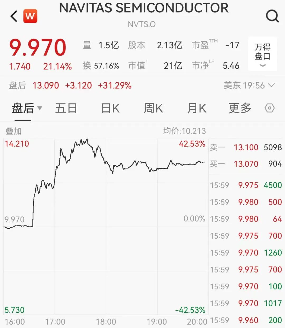 此外,纳微半导体涨超20%,盘后一度涨超40%。消息面上,公司宣布产品研发取得关键进展,将支持英伟达AI平台。