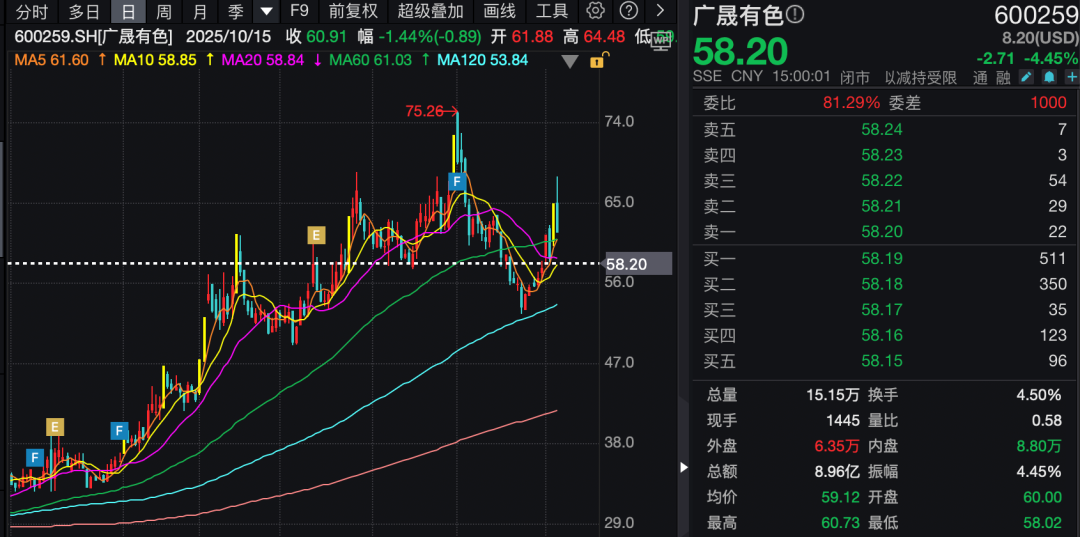 广晟有色10月16日晚披露业绩预增公告,经初步测算,预计2025年前三季度实现归母净利润1亿元至1.3亿元,扭亏为盈。