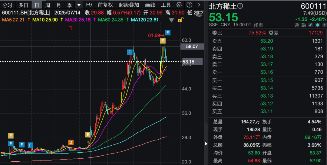 受益于稀土市场行情整体上涨的并不仅仅是广晟有色。