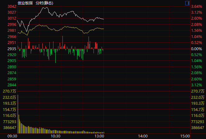 概念板块方面,CPO概念、光通信、复合铜箔、人脑工程等概念涨幅居前,黄金概念板块上午出现较明显调整,盘中跌幅一度超过2%。