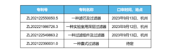 2021年9月24日,赛普公司向国家知识产权局申请除病毒过滤器实用新型专利(CN202122327443.X),技术方案为除病毒过滤器。2022年4月19日,上述专利申请获批。