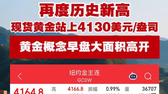 现货黄金站上4130美元/盎司 黄金概念早盘...