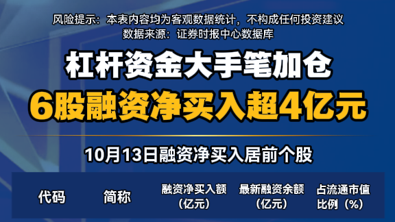 杠杆资金大手笔加仓 6股融资净买入超4亿元