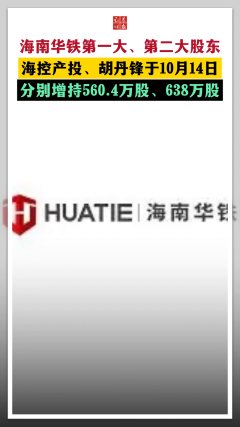 海南华铁第一大、第二大股东海控产投、胡丹锋于10月...