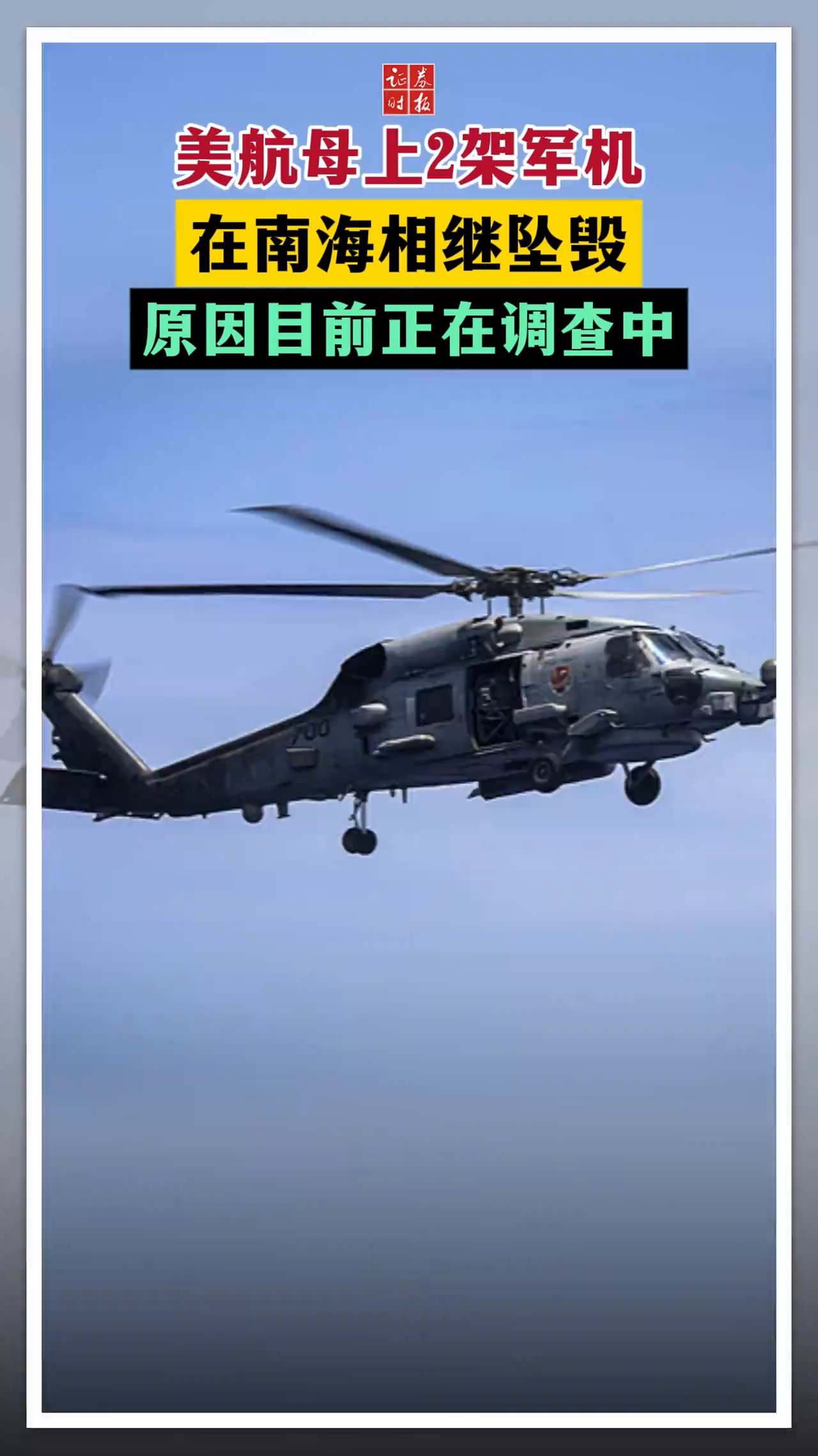 美航母上2架军机在南海相继坠毁 原因目前正在调查中