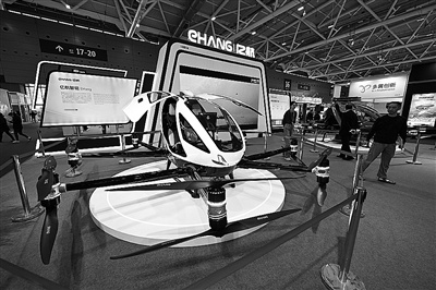 在第二十五届高交会上,观众参观亿航无人驾驶载人电动垂直起降航空器。 记者 毛思倩 摄