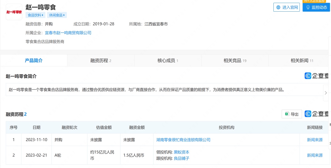 而这家短期内二度被接盘的企业,就是前段时间因“零食界两大巨头合并”而登上热搜的赵一鸣食品科技有限公司(以下简称“赵一鸣”)。
