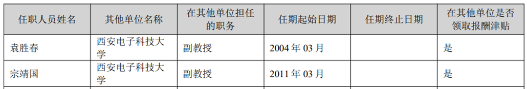 其中,袁胜春拥有西安电子科技大学物理电子学专业硕士学历,副教授职称,国务院特殊津贴专家,自2004 年3月至今,任西安电子科技大学讲师、副教授;宗靖国拥有西安电子科技大学光学工程专业博士学历,高级工程师、副教授职称。2011年3月至今,任西安电子科技大学讲师、副教授。