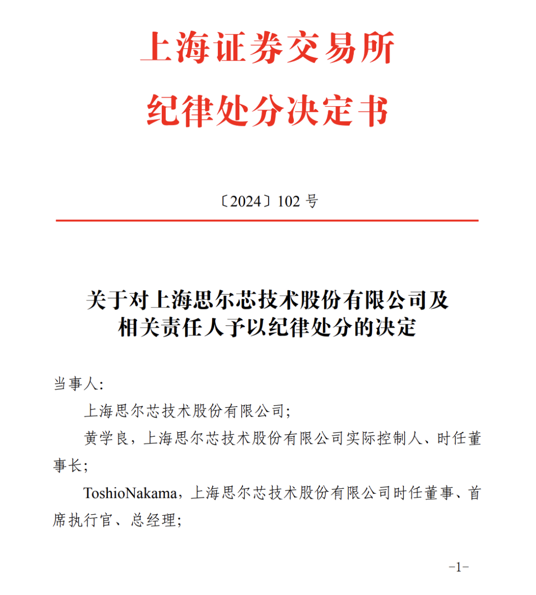 继今年2月证监会对思尔芯欺诈发行违法作出行政处罚后,上交所再对思尔芯及其相关责任人作出纪律处分决定。
