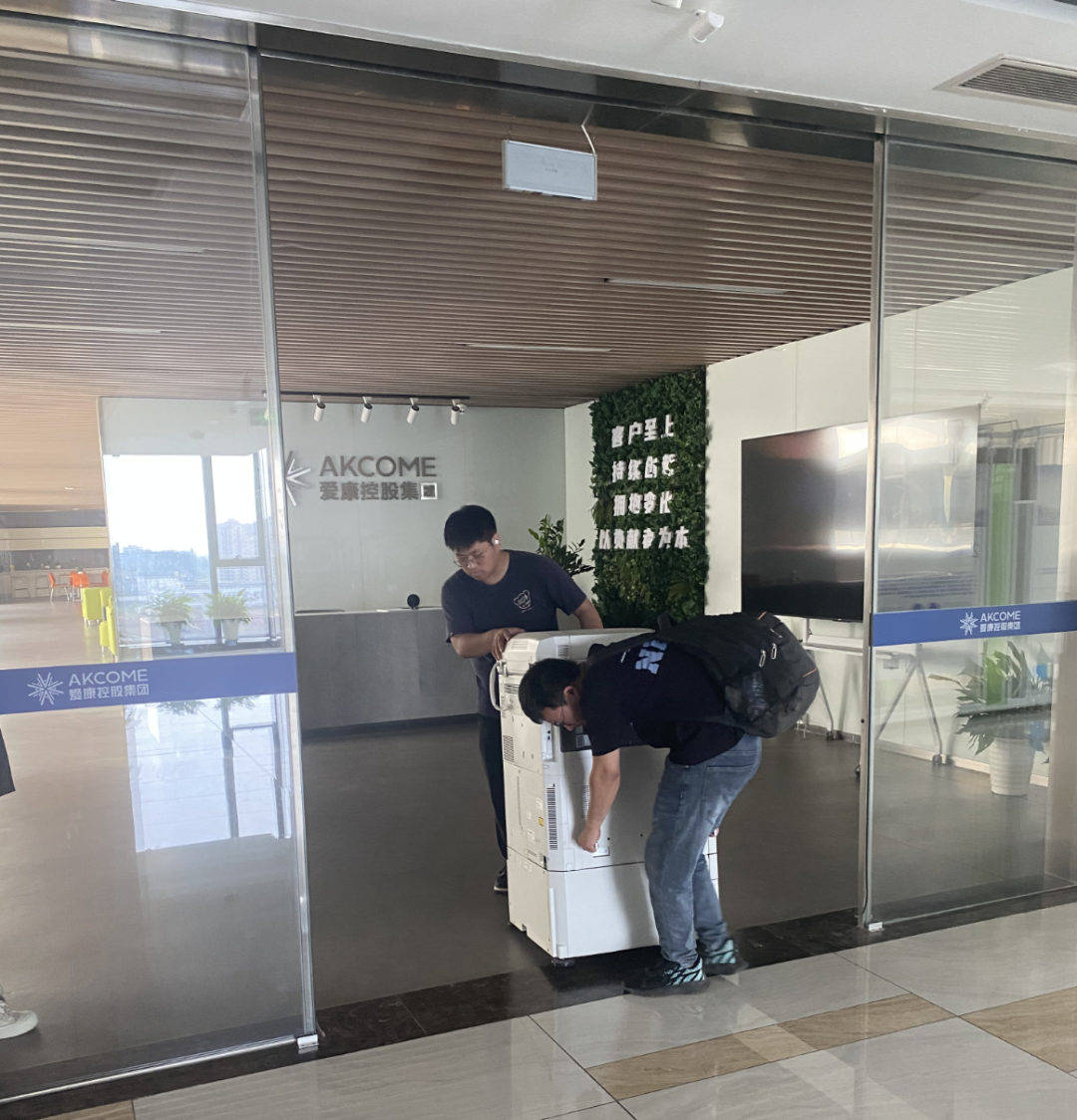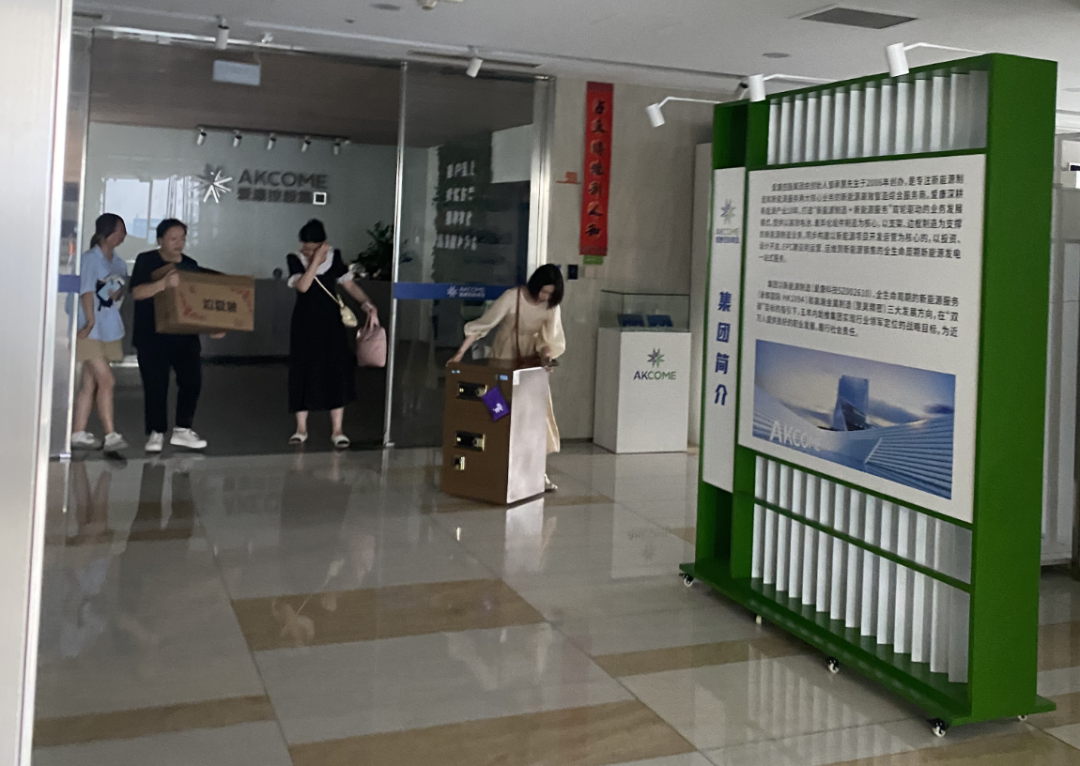 记者探访期间,巧遇两位工作人员从“爱康系”杭州总部搬出一台打印机。记者上前询问获悉,他们并不是爱康的员工,而是办公设备租赁公司工作人员。至于为何搬走打印机,有没有结清服务费?上述工作人员称:“老板让他们来搬的,我们普通员工并不清楚。”