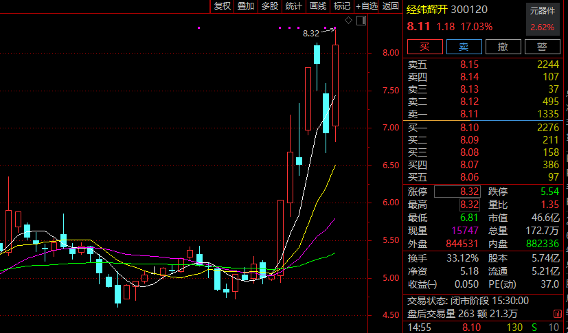 经纬辉开当日迎来20%涨停,此后就开启了一波上涨。