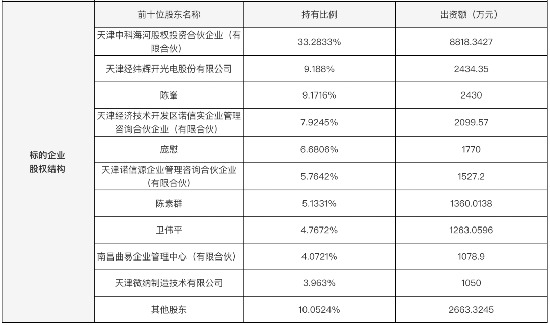 诺思目前的大股东为天津中科海河股权投资合伙企业(有限合伙),持有33.2833%股份。经纬辉开持有9.188%股份。