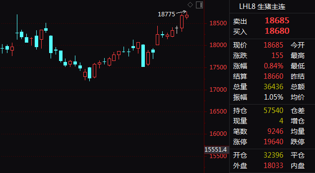 7月23日国内期货市场生猪主力合约2409一度达到18775元/吨,创出近两年来高点。