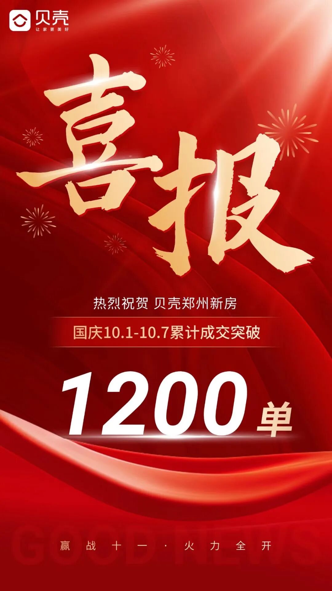 据贝壳研究院郑州分院统计数据,国庆7天,郑州贝壳新房成交1202单,日均成交172单(2023年日均141单),同比上涨约22%;二手房成交706单,日均成交101单(2023年日均71单),同比上涨约41.6%。