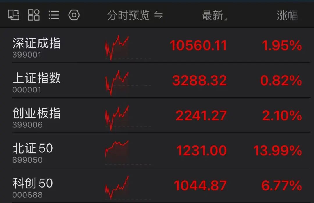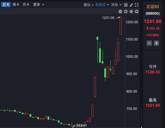 北交所上市公司早间表现抢眼,北证50指数放量飙升近14%,创历史新高。半日成交接近前一交易日全天成交。“924行情”以来,短短15个交易日北证50指数翻倍。