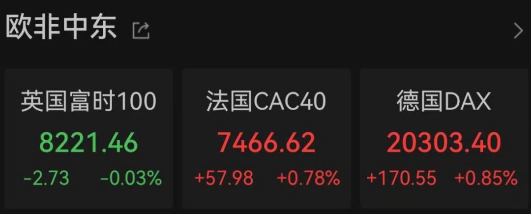 欧洲市场,法国、德国股指大幅拉涨,而英国富时100指数则震荡飘绿。