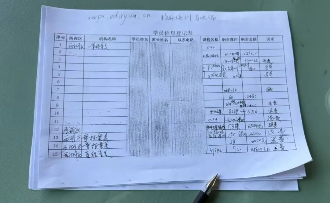 连日来,童程童美维权家长晒出了登记情况、缴费账单、课时等信息。记者拿到的一份童程童美某校区课时、缴费统计单显示,统计人数为113人,合计167.62万元,人均1.68万元。其中,剩余课时最少为21节课,最多为374节课;预计剩余金额最少为3500元,最多为6.6万元。另外,还有缴费家长对记者表示,他所在维权群,登记金额最多的约20万元。