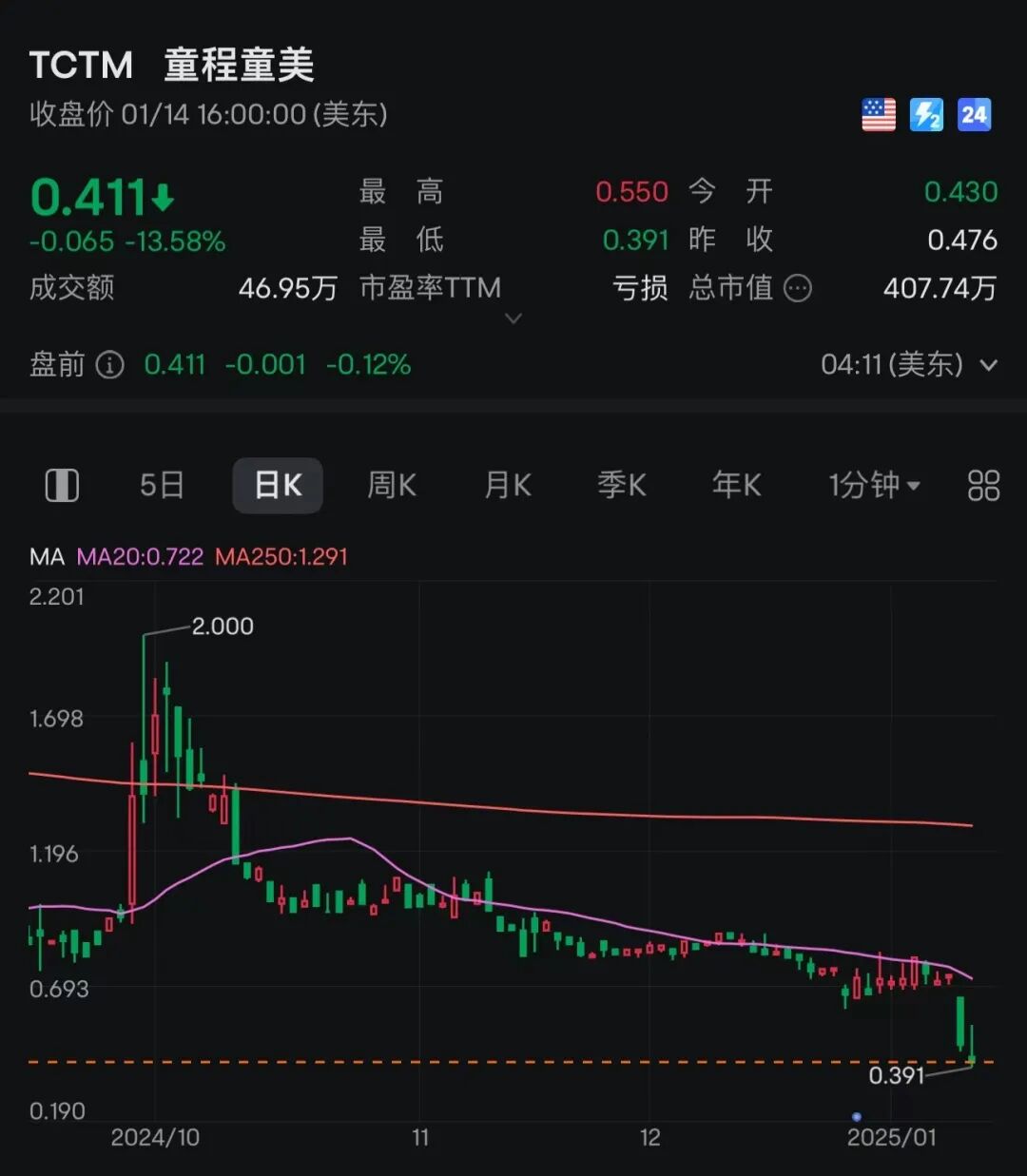 杭州、深圳、成都、合肥、长沙......童程童美爆雷后,其在各地的分支机构,陆续曝出一夜关门,人去楼空。受此影响,童程童美(TCTM)股价断崖式下跌。1月13日、14日,公司股价分别下跌35.24%、13.58%。