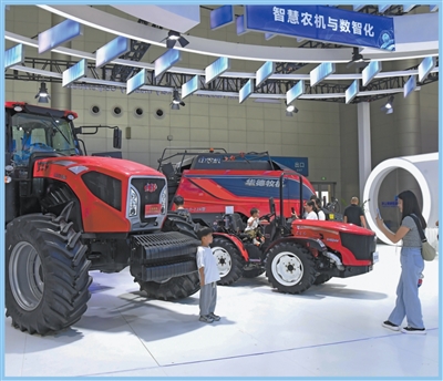 观众与智慧农机合影。