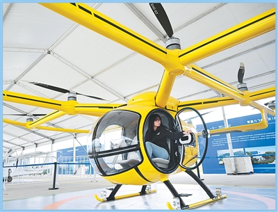 观众在体验载人飞行器。