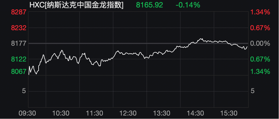 纳斯达克中国金龙指数盘初一度跌超1.3%,随后震荡走高,尾盘一度翻红,截至收盘,微跌0.14%。具体个股方面,小马智行跌超5%,金山云跌超4%,亿航智能、陆控跌逾3%,世纪互联跌近3%;富途控股涨超4%,老虎证券、新东方涨超2%,华住集团、阿里巴巴、百胜中国涨超1%。