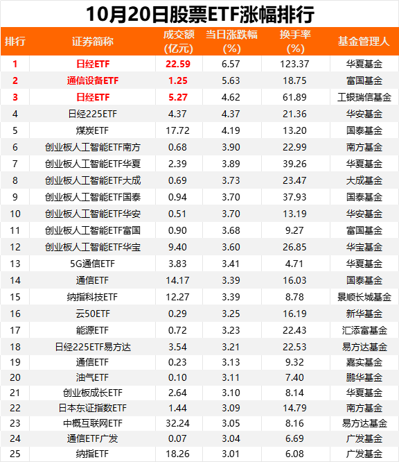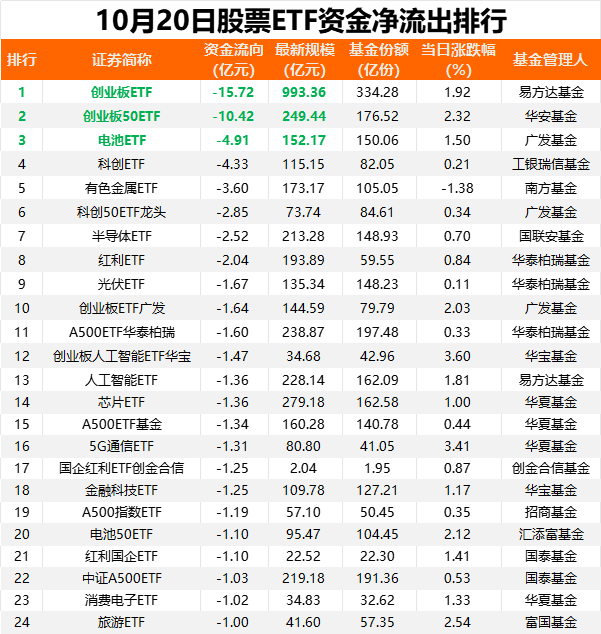 昨日(10月20日),市场冲高回落,创业板指一度涨超3%。市场缩量震荡中,资金再度借道股票ETF加仓。