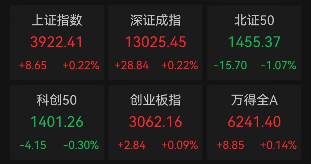 今日(10月23日),A股主要股指尾盘集体翻红,上证指数盘中最大跌幅为0.93%,收盘涨0.22%,深证成指盘中最大跌幅为1.48%,收盘涨0.22%,创业板指收盘微涨0.09%。