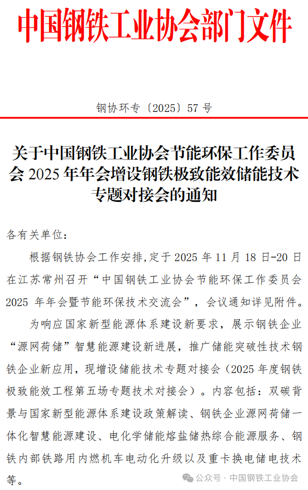 人民财讯10月23日电,据中国钢铁工业协会消息,中国钢铁工业协会节能环保工作委员会2025年年会增设钢铁极致能效储能技术专题对接会。