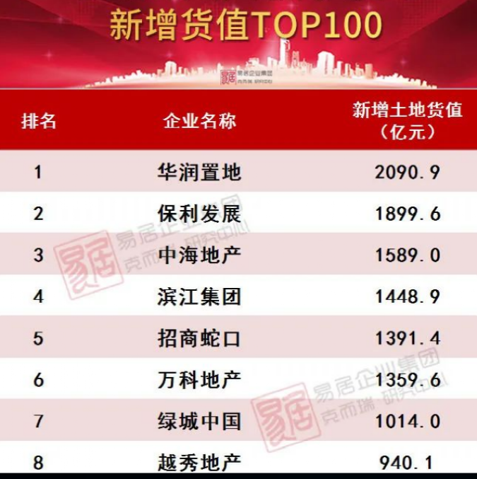 1-9月,新增货值破千亿的房企有7家,较去年同期减少了13家,积极拿地的房企数量明显锐减。华润、保利和中海位列新增货值榜前三,三家房企年内新增货值均超过1500亿元,拿地金额看保利、华润双双突破900亿元,逼近千亿大关。