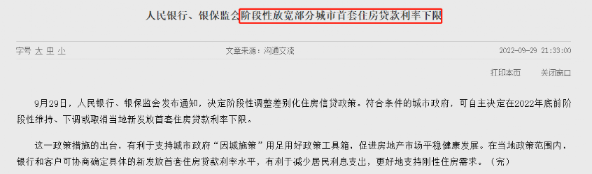 就在国庆节前,9月29日央行、银保监会决定阶段性调整差别化住房信贷政策;9月30日财政部、税务总局发文,对出售自有住房并1年内购房的纳税人,售房已缴个税予以退税优惠。与此同时,央行也下调了首套房公积金贷款利率。