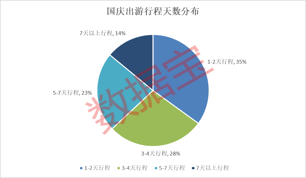 为响应就地过节要求,游客出游半径同比缩短。根据途牛旅游网截至9月21日预订数据,国庆期间本地游、周边游出游人次占比64%,长线游出游人次占比36%。从出游天数看,1天~2天行程占比居首,为35%;其次是3天~4天行程,占比28%。本地游、周边游是今年国庆旅游消费主流,预订考虑周期更短、碎片化出游需求更为突出。