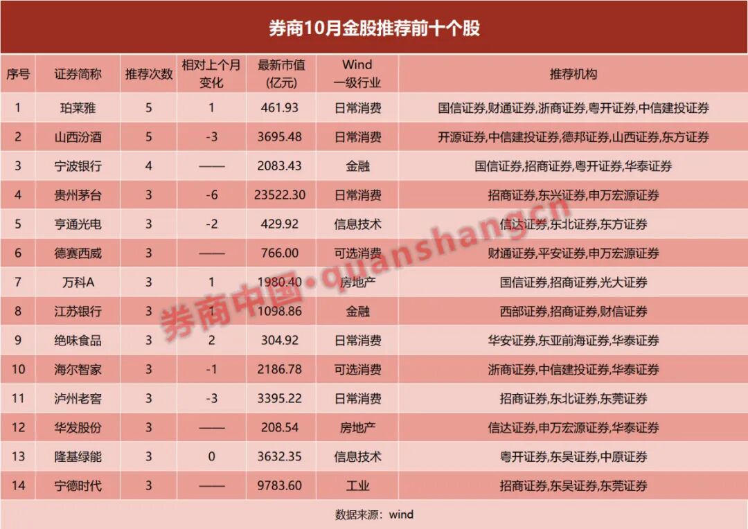 过完9月,券商10月的金股推荐又来了。