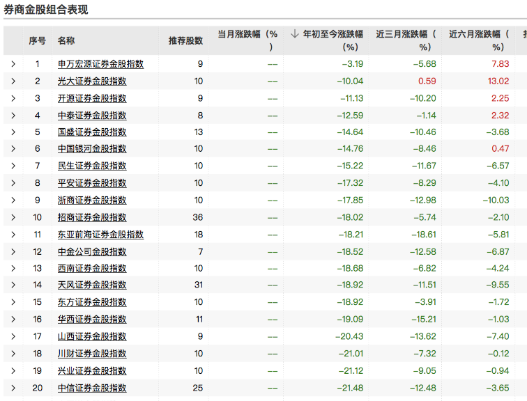 券商金股属于券商研究所分析师自下而上推荐的股票组合,每月底推荐下一个月金股组合,每月刷新一次。券商中国记者注意到,券商金股组合虽然推荐次数和标的不少,但是今年以来所有券商金股表现尚没有一家收获正收益,跑赢上证指数的券商亦不到10家。